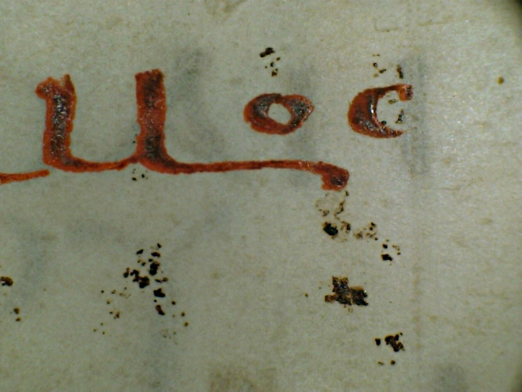 | 7. Detail of a dense red ink used for the text (Quire 61 f.1r, BL f.104r b2-3) |