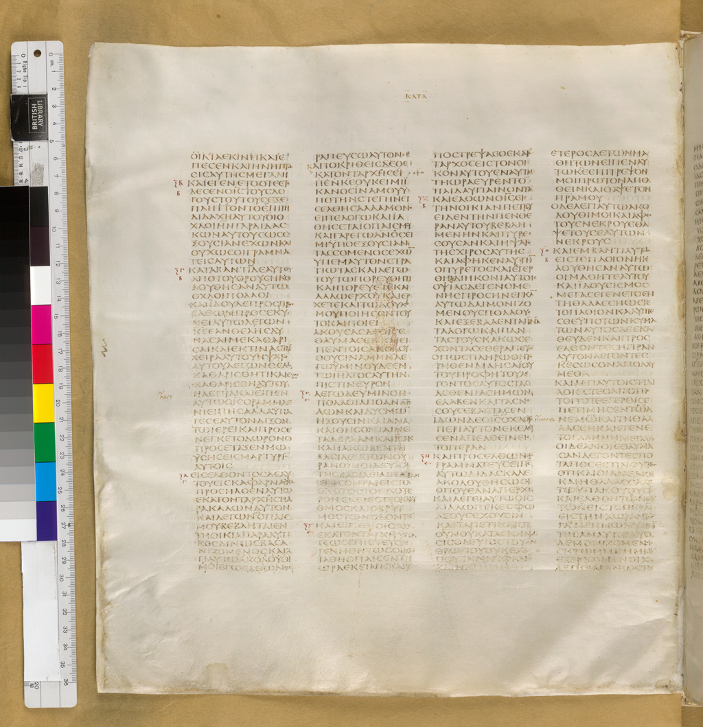 Kirsopp Lake[27] also mentions the red ink used, naming the pigment vermillion[28], and including the New Testament quire numbering in the text considered.