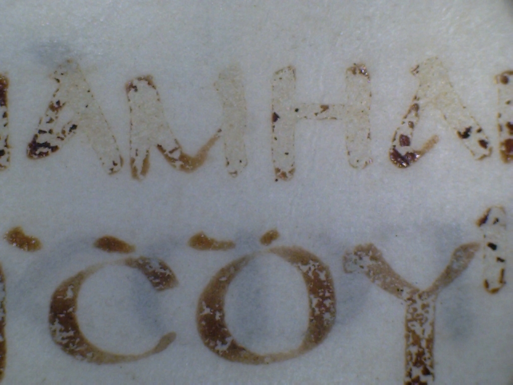 In the recent investigation, there seem to be inconsistencies: sometimes the ink appears to be soluble sometimes not. It is still unclear what inks (the one used for the original text and the ones used for the retracing) are soluble and further investigations are needed.